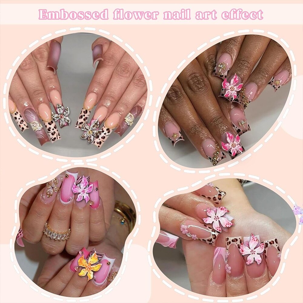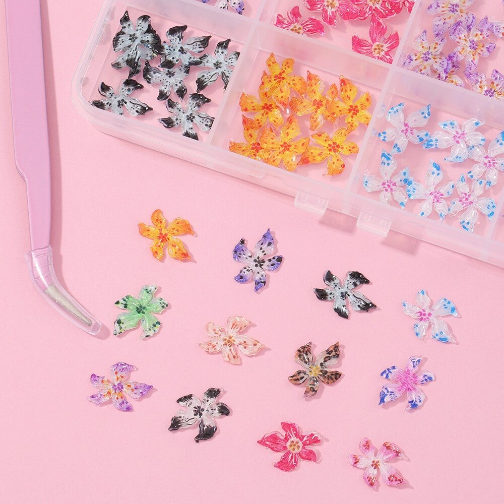 Hot Sale Mixed Color 96PCS 3D Spring Summer Flower Embossed Flower Nail Art Effect Nail Decoration Nail Art Charms